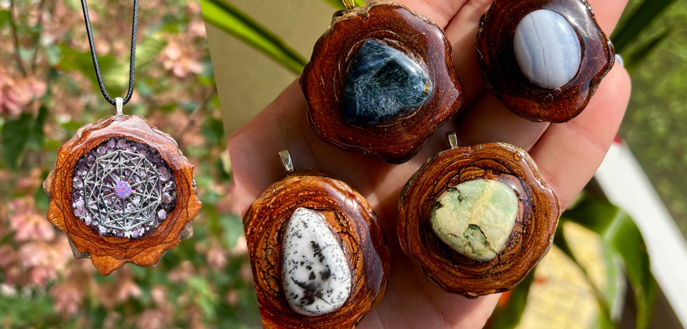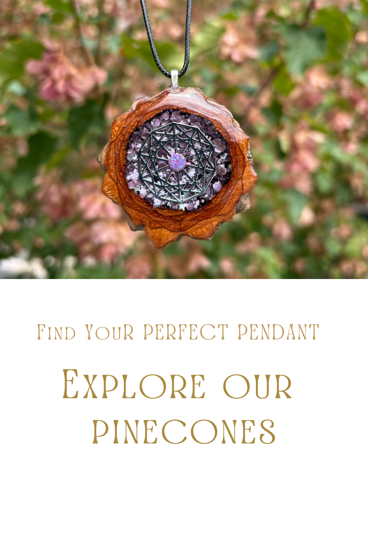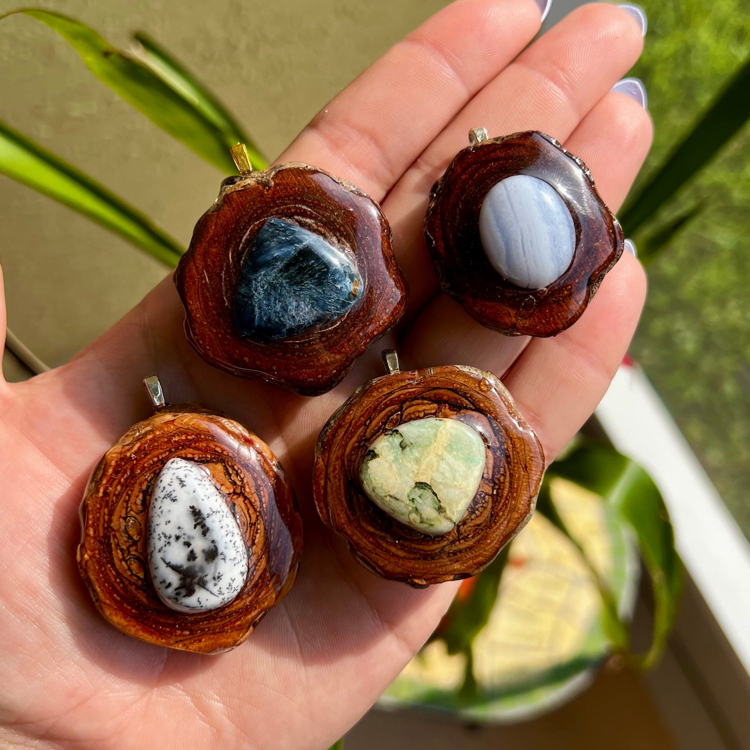 To enhance their natural beauty and energy, each pendant is paired with thoughtfully chosen crystals and colors. Whether for grounding, clarity, protection, or creativity, the added elements are selected with intention—infusing each piece with meaning and vibrancy. From earthy tones to luminous stones, these pendants are more than jewelry—they're small, personal talismans that carry the spirit of the forest.