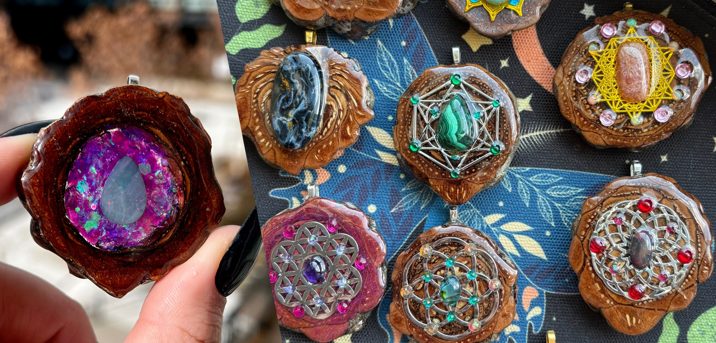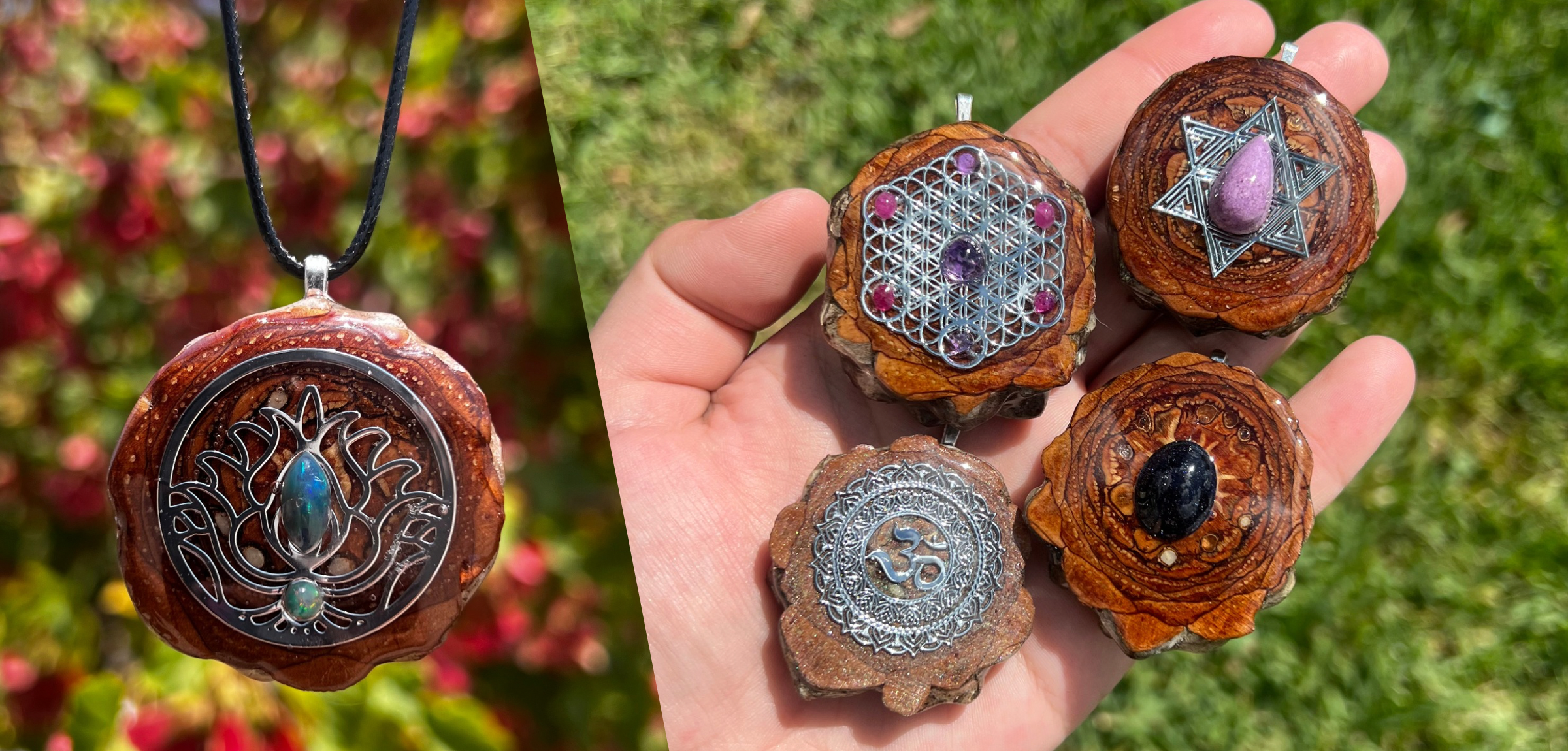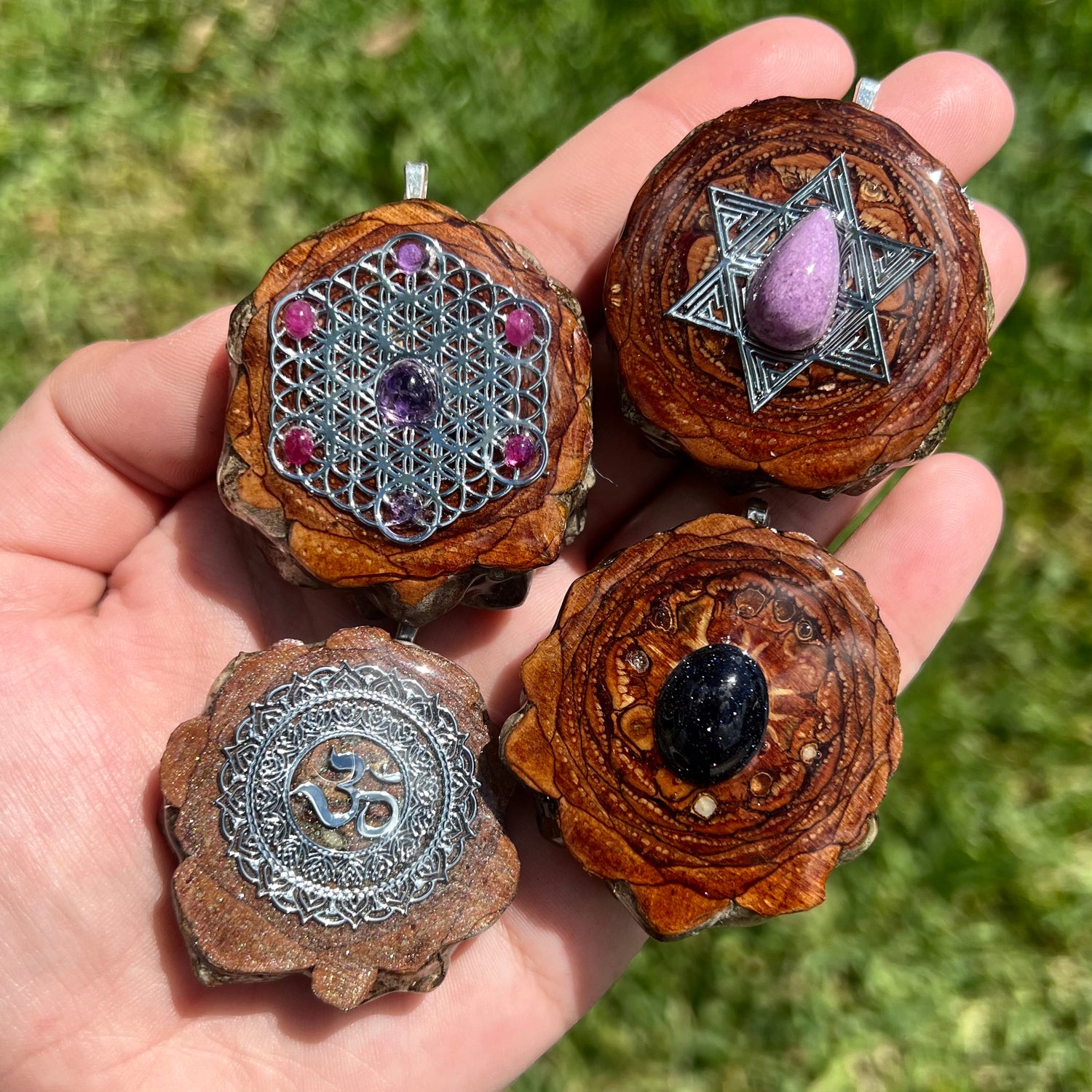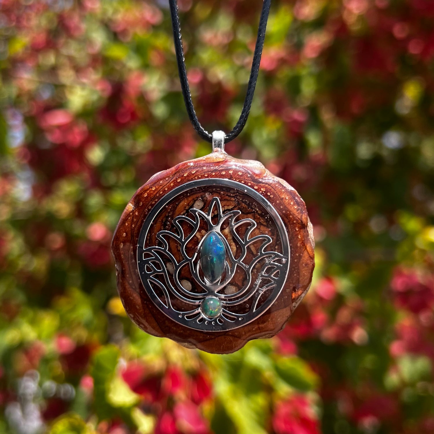 To enhance their natural beauty and energy, each pendant is paired with thoughtfully chosen crystals and colors. Whether for grounding, clarity, protection, or creativity, the added elements are selected with intention—infusing each piece with meaning and vibrancy. From earthy tones to luminous stones, these pendants are more than jewelry—they're small, personal talismans that carry the spirit of the forest.